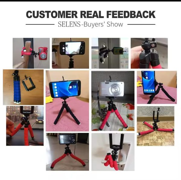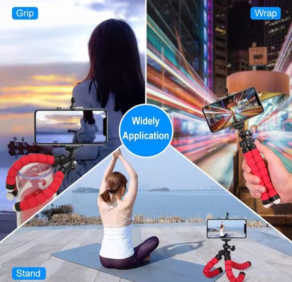 Enhanced Flexible Legs and Sturdy- With high density foam and premium plastic, Design ofOCTOPUS legs can be twisted into any shape, wrap it on the tree, bike, lamp, and chair. Leg joints withrubberized ring and foot grips allow you to bend and rotate 360°for enhanced stability on difficultsurfaces.