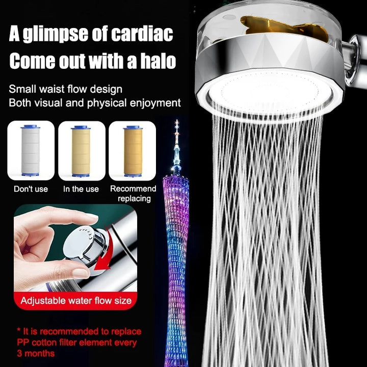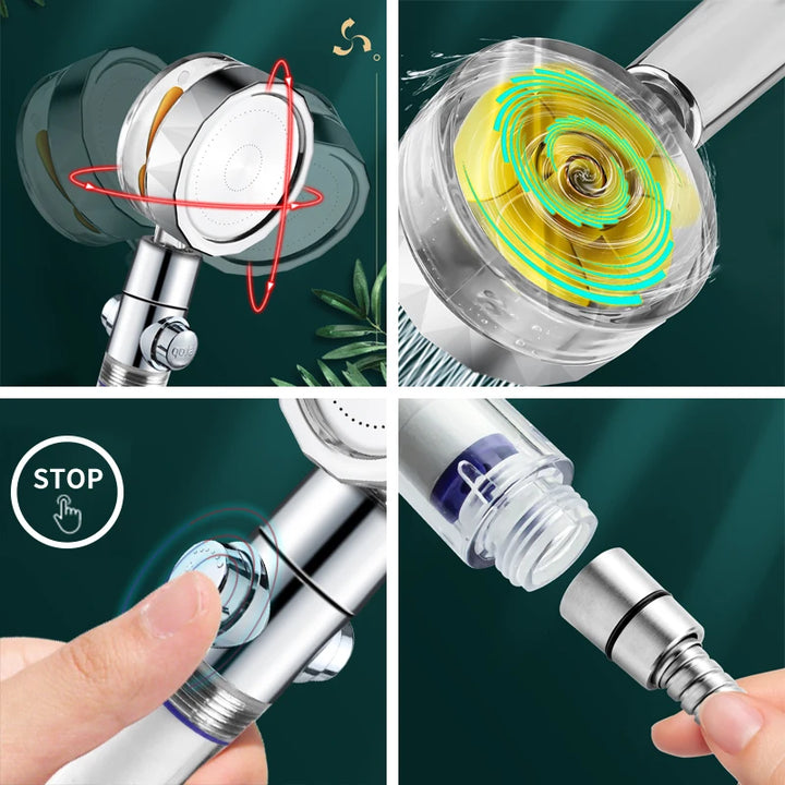 1.Shower head makes water flow generates a pressurized flow through the rotating wheel, increasing the speed of the water flow, thereby increasing the water pressure.Apply to low water pressure.